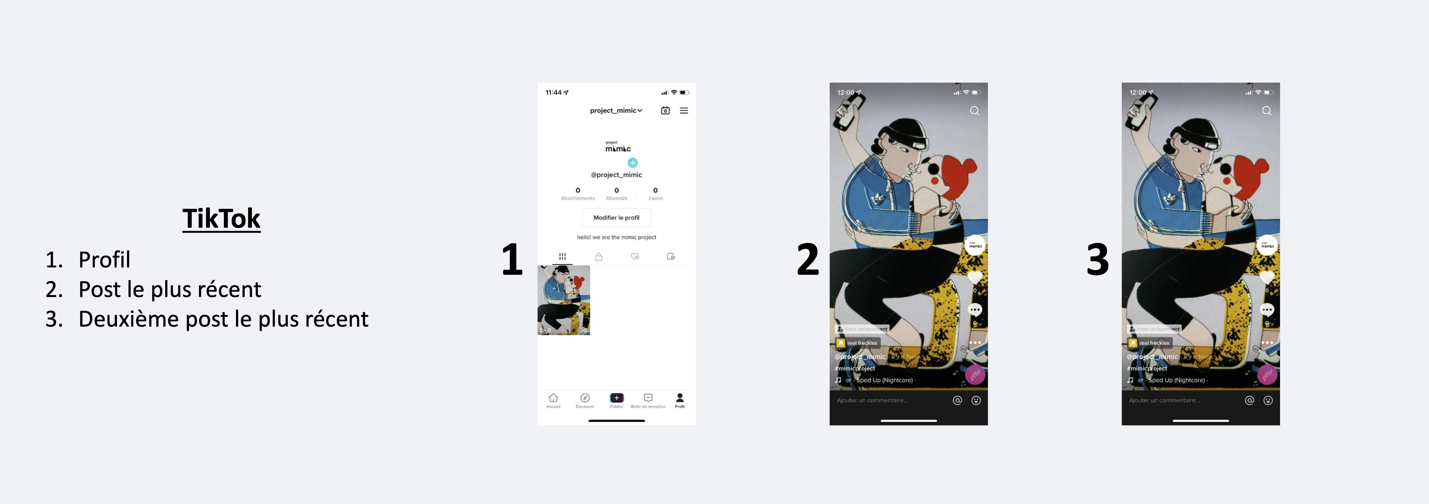 Si tes posts (publications)/snaps/stories comprennent plusieurs photos ou vidéos, merci de prendre une capture d'écran du moment du post qui, selon toi, représente le mieux ce post. Ou dans le cas où plusieurs événements sont montrés dans le post/snap/story, sélectionne le moment qui est le plus important pour toi. Si l’un de tes posts est sensible ou si tu n’es pas à l’aise pour prendre ou partager une capture d'écran, tu peux sauter ce post/snap/story et utiliser une capture d'écran du prochain post.
